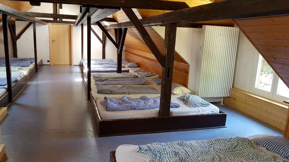 Das Haus verfügt über insgesamt 58 Betten, aufgeteilt in 2 Schlafräume mit je 22 Betten und in 3 Zimmer mit 4,4 und 6 Betten.