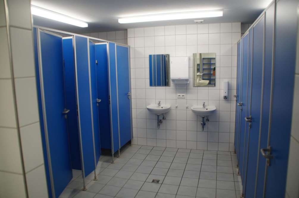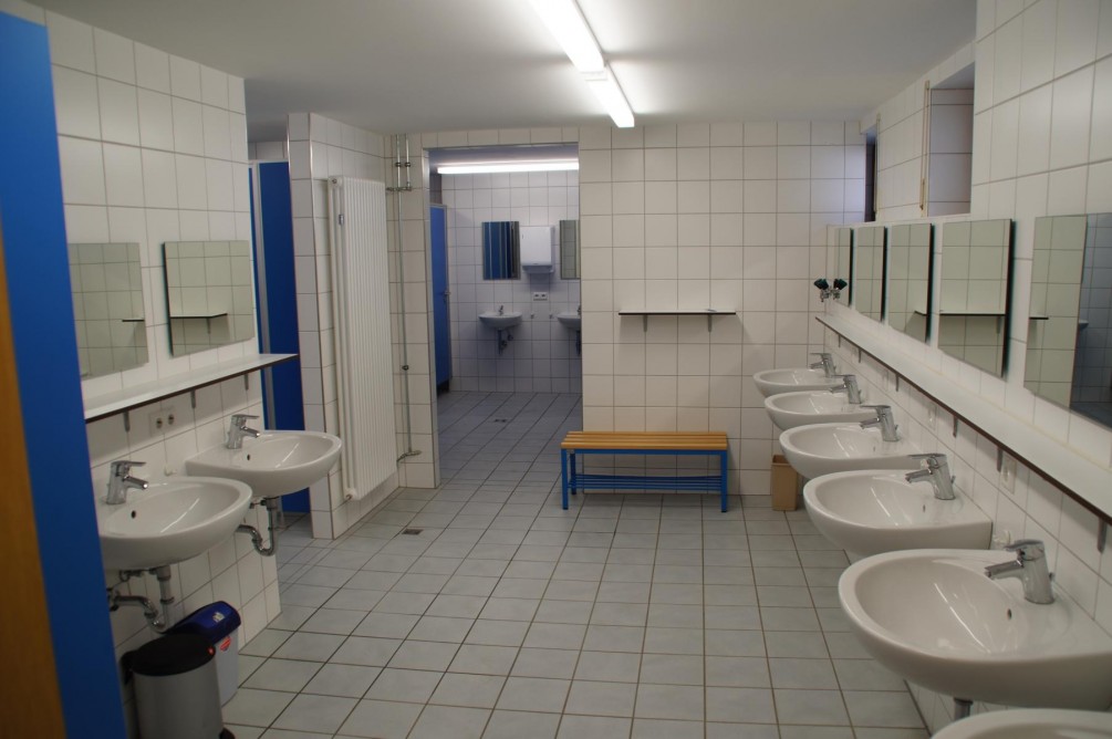 Die beiden Waschräume und Toiletten sind mit ausreichend Einzelduschen, Waschbecken und Toiletten ausgestattet und wurden 2013 gründlich renoviert.